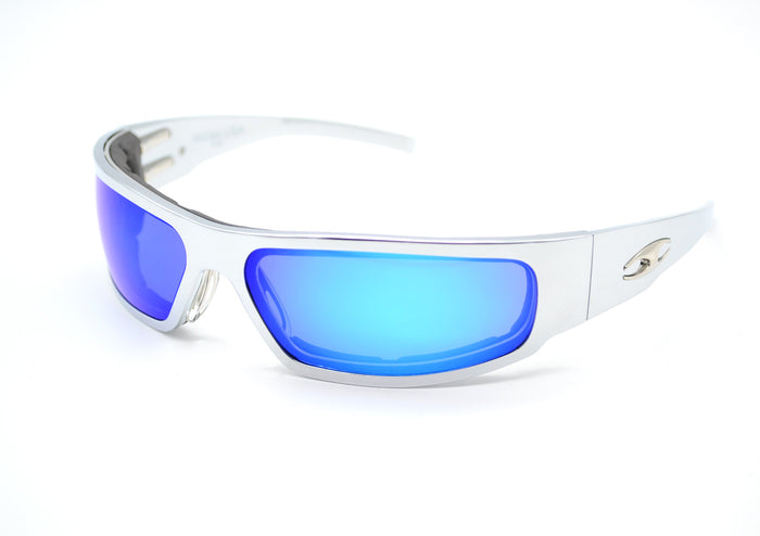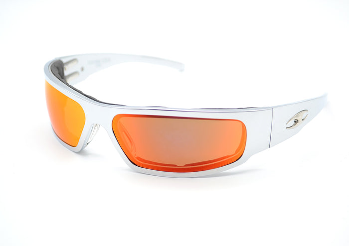 Next our chrome motorcycle riding sunglasses lenses are made of 2 mil thick poly-carbonate lens material. All of our motorcycle glasses meet or exceed ANSI standards for shatterproof protection and impact resistance.