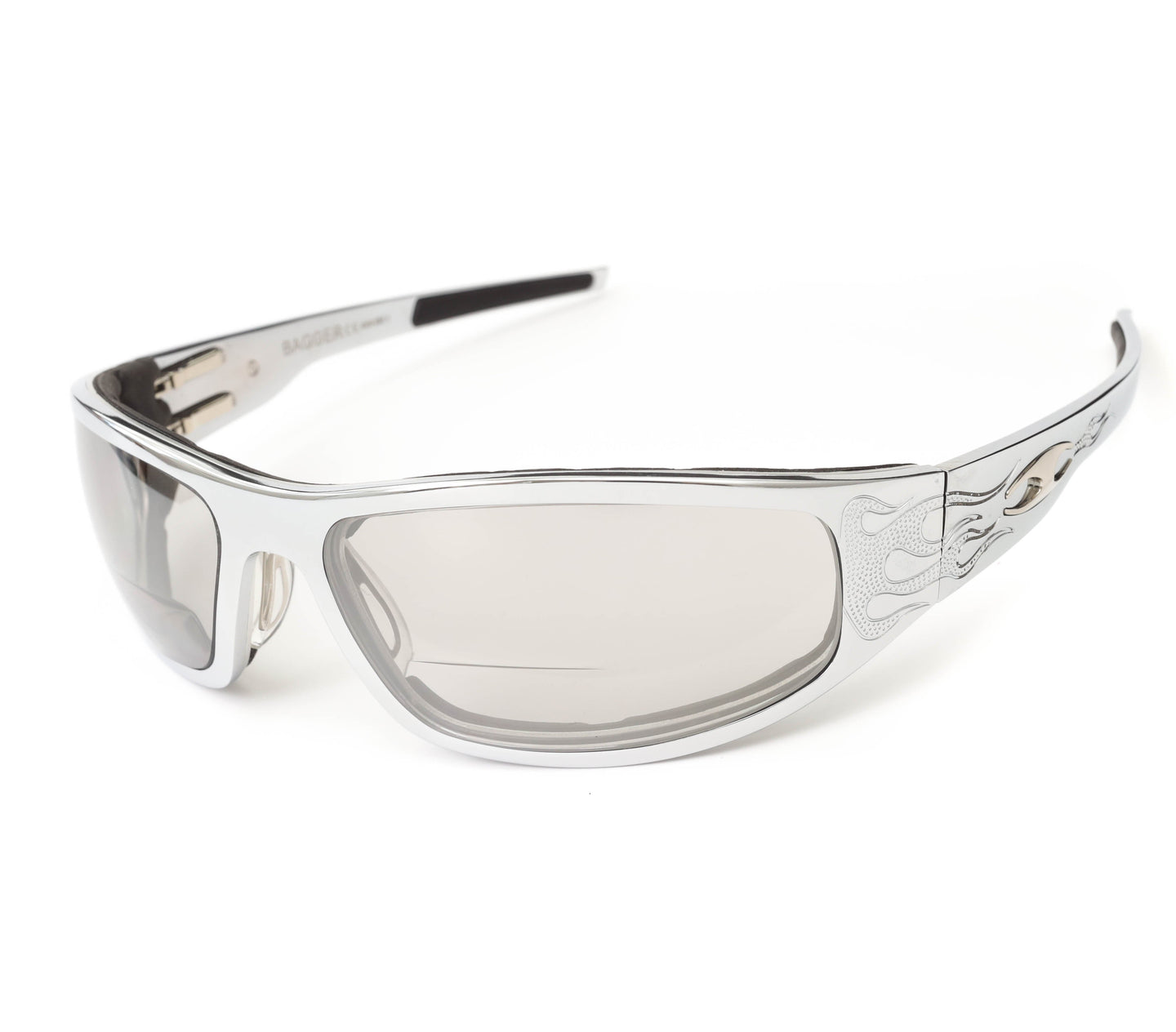 “Bagger” Chrome Prescription Motorcycle Glasses (Flames)